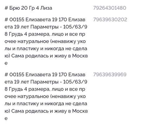 Ее номер телефона есть в записных книжках у эскорт агентств. Ну и у других людей она многократно записана соответствующие: