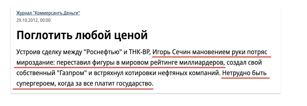 Ладно, с одной стороны можно сказать: окей, Путин назначил Сечину гигантскую зарплату за то, чтобы тот возглавлял «Роснефть», и он просто тратит эти деньги на своих возлюбленных. Но ещё раз: сама Альбина работает в «Роснефти», она получает там зарплату. Зачем тогда тратить на неё ещё и деньги госкомпании? С какой стати? Ей не хватает сечинских?