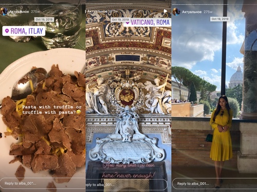 Альбина публикует сторис 19 октября с отметкой Рим.