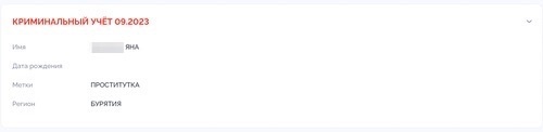 В интернете есть миллион ее фотографий на сайте эскортниц, но тут случай попроще: Яна фигурирует в утекшей полицейской базе с отметкой «проститутка».