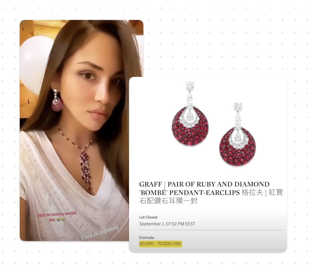 Рубиновые серьги в ее ушах, тоже Графф, — 7 миллионов.