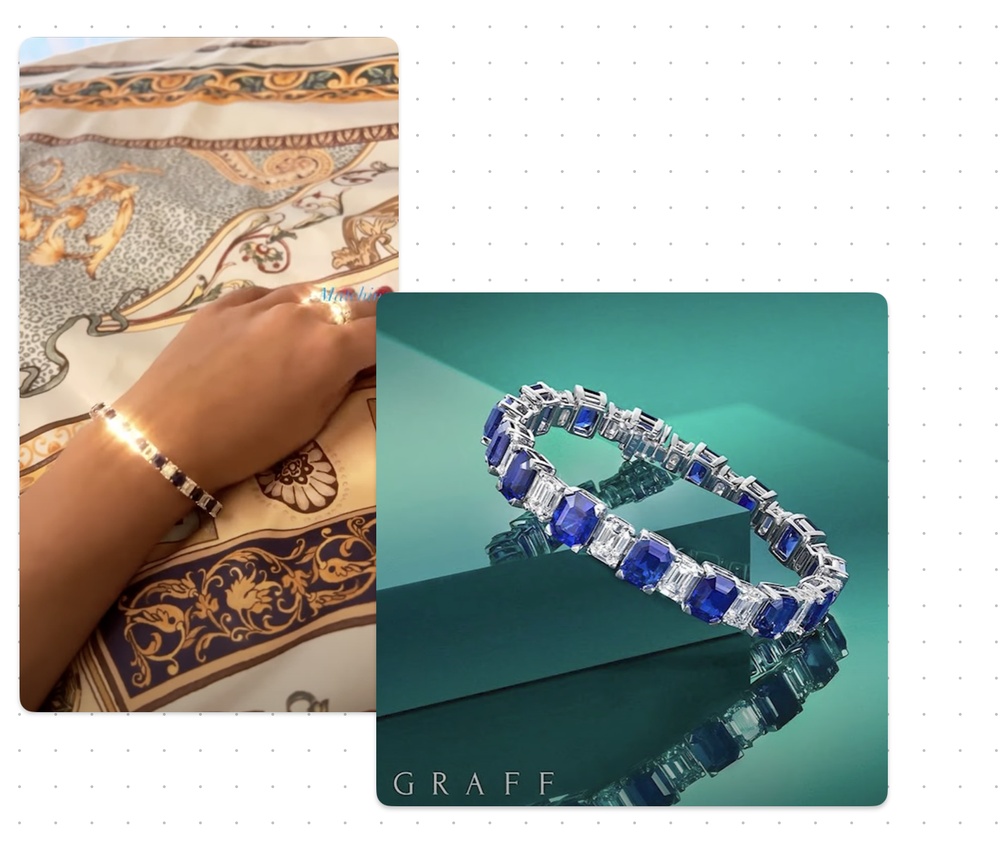 Альбина открывает коробочку, а там браслет. Мы нашли его в каталогах и запросили стоимость — около 20 млн рублей.