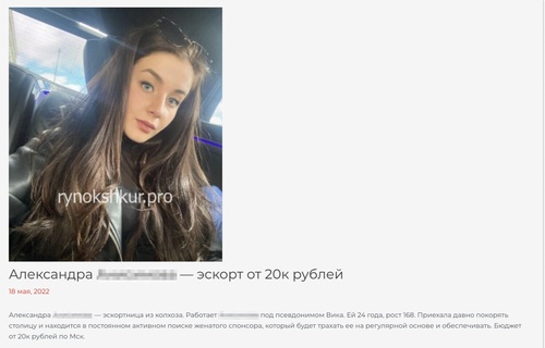 Такая же история, как с Анастасией. И снова заметка на профильном сайте про эскорт.