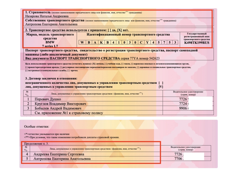 На самом деле это не случайный автомобиль БМВ. В 2009 машину купила себе дочь Екатерины Андреевой, поездила на ней 12 лет и продала некой Екатерине Антроповой.