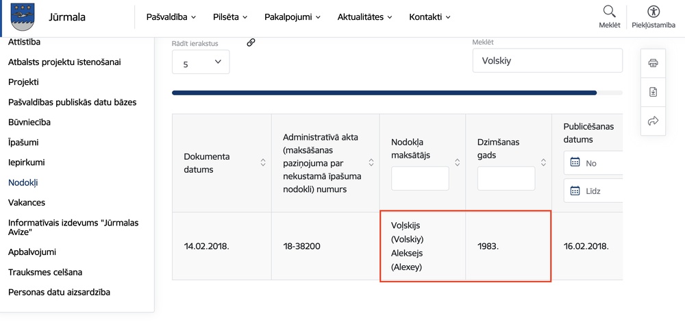 На сайте Юрмальского городского самоуправления мы обнаружили упоминание зятя Екатерины Андреевой, он не заплатил налог на имущество, которое у него есть в Юрмале.