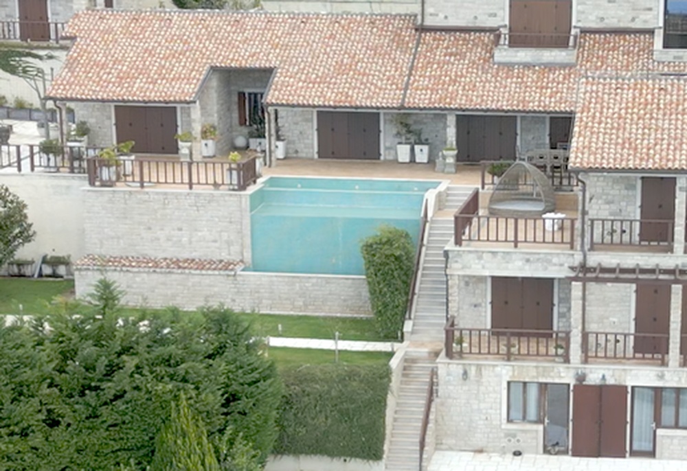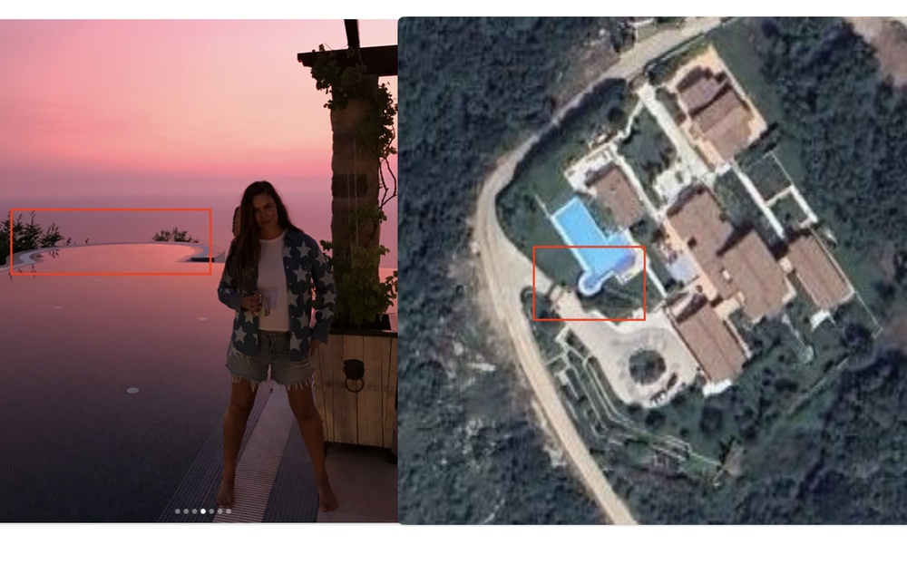 Конкретное расположение черногорского дома, в котором все это происходит, тоже найти не сложно. Смотрим вот на эту фотографию и сравниваем со спутниковой картой нужной нам части Черногории. Тут и находим очень похожий дом — хорошо виден бассейн, по форме напоминающий ухо Микки-Мауса на углу.
