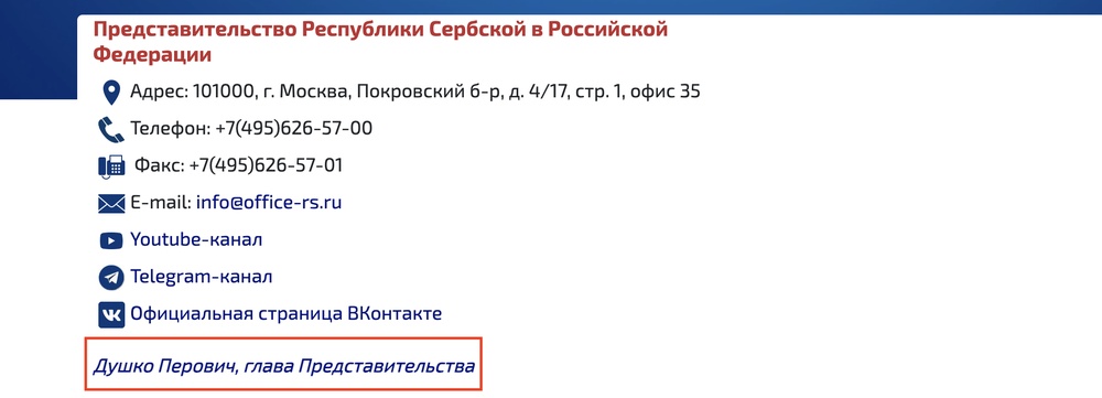 Зачем подворовывать на посольстве Республики Сербски? Душан Перович жаловался СМИ, что в представительстве не хватает денег, офис дорогой, цены растут. Одновременно с этим почти 20% их бюджета тратится на аренду автомобиля дочери Екатерины Андреевой и какие-то выплаты для нее же. Мелочно, но очень показательно.