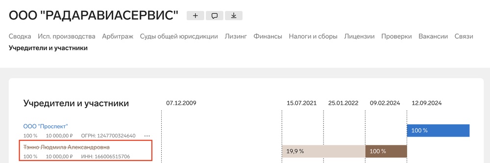 Фирма располагается в здании завода Элекон в Казани, записана на номиналов, но прошлой собственницей была знакомая нам старшая сестра Колесова — Людмила Тэнно.