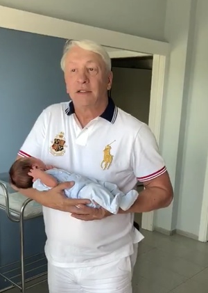 А вот Николай Колесов там же держит на руках именинника Алешу. Камера поворачивается и вау! Вот это дом, вот это размах! Да еще и на море!