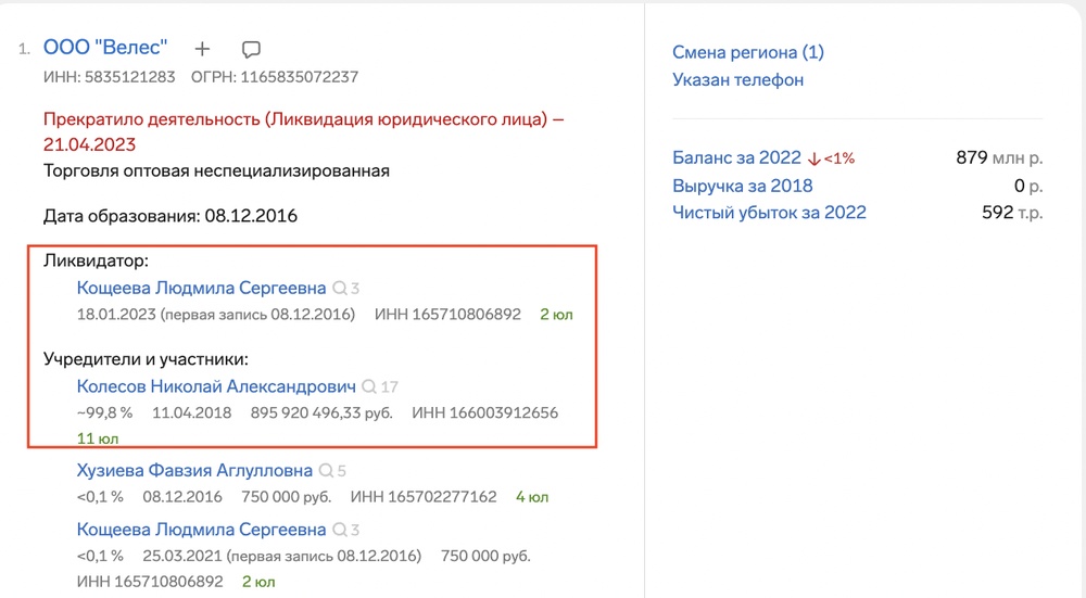 Она пенсионерка, раньше работала заведующей библиотекой в Казанском авиационном институте. А еще она бывшая теща Колесова, мать Дианы. И это не первый раз, когда Колесов оформляет на нее активы. А еще она вместе с самим Колесовым и Людмилой Кощеевой, которую мы видели в Дубае по соседству, состояла сразу в нескольких советах директоров оборонных компаний.