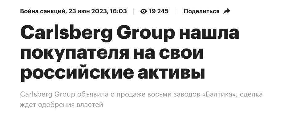 Еще в марте 2022 года, Карлсберг заявили о том, что свой бизнес в России они полностью сворачивают и продают. В июне 2023 года объявили, что новый покупатель для «Балтики» найден и с ним даже подписано соглашение.